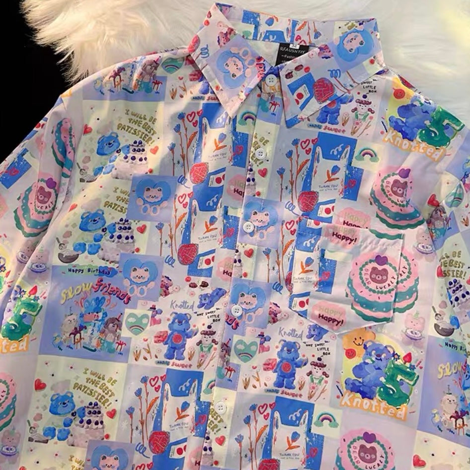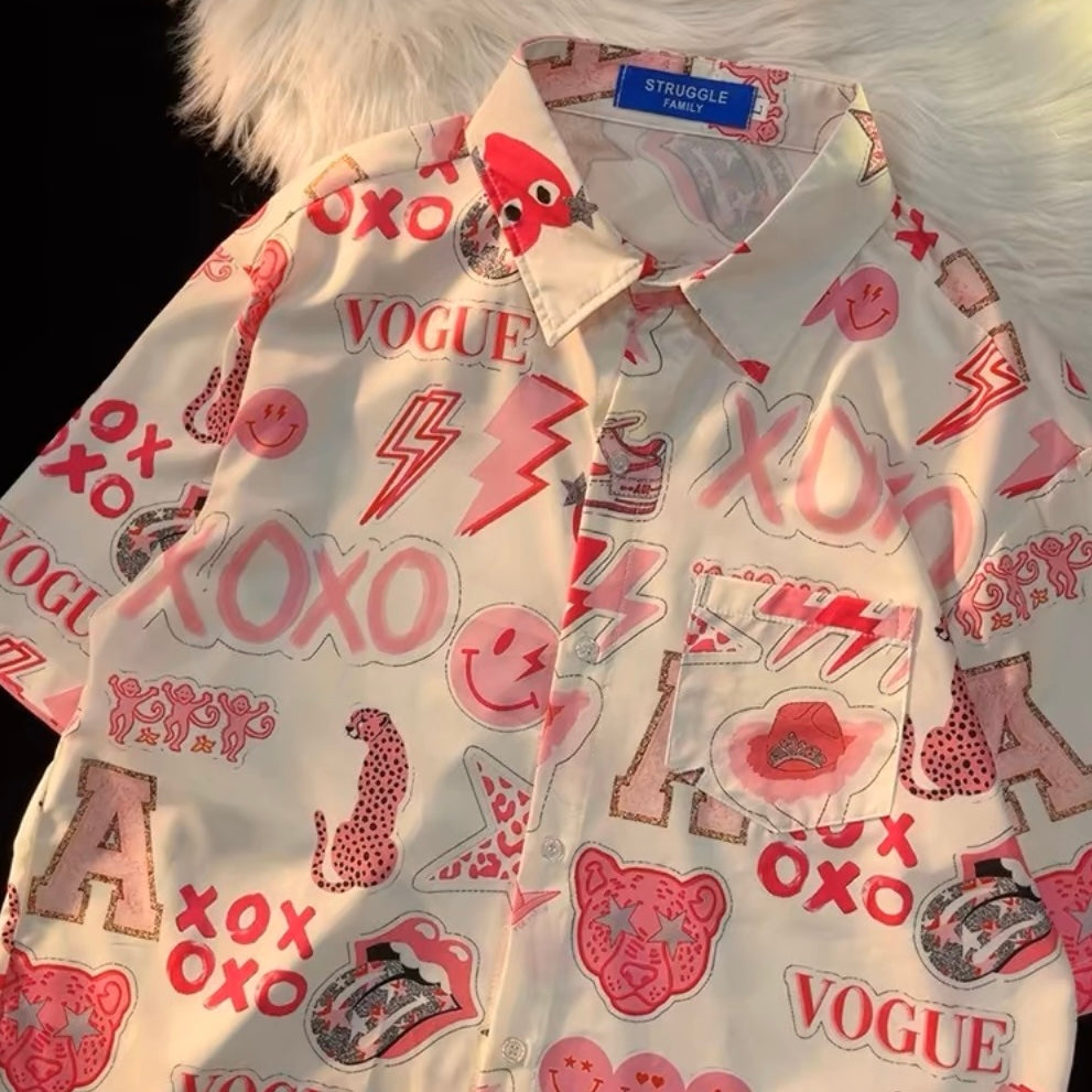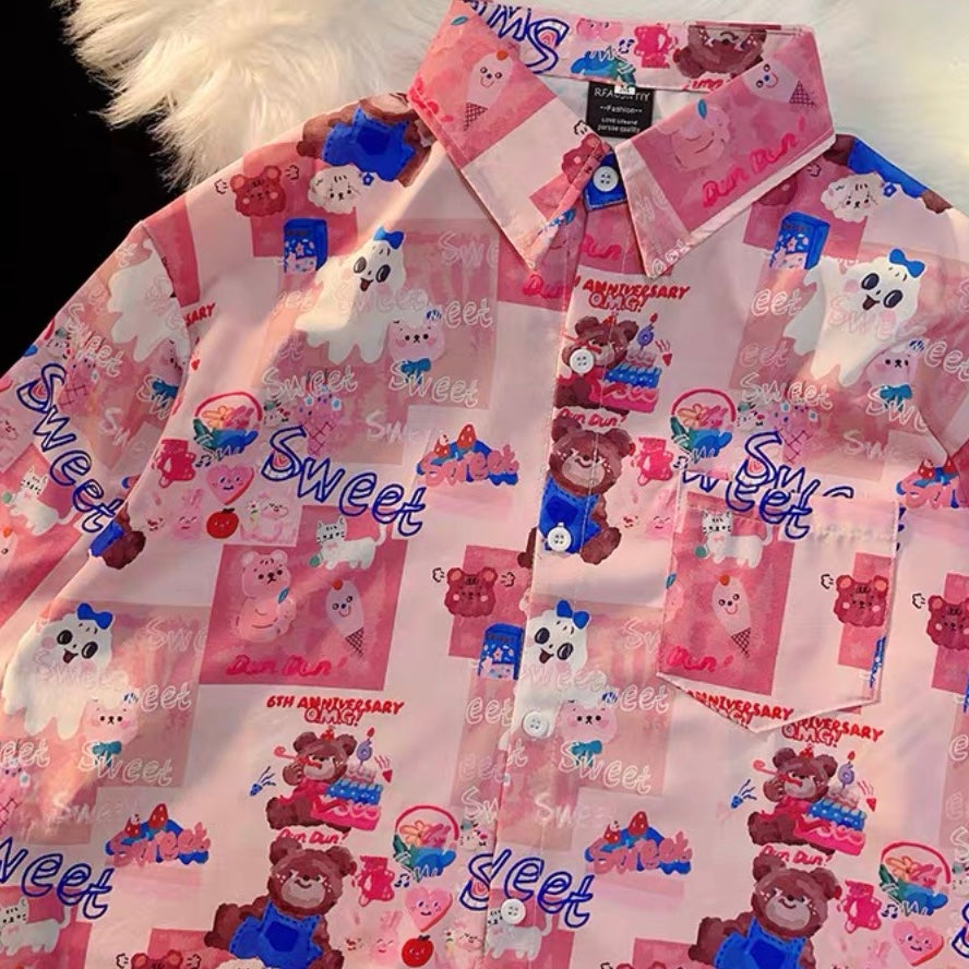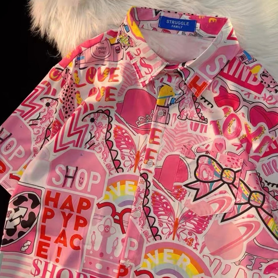 A 多巴胺蓝粉系列短袖衬衫