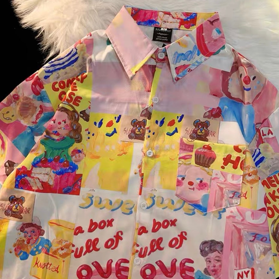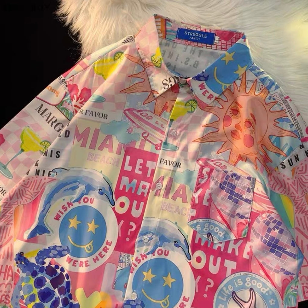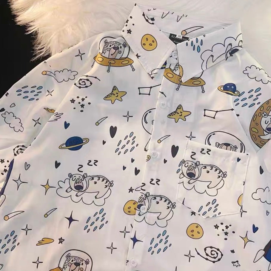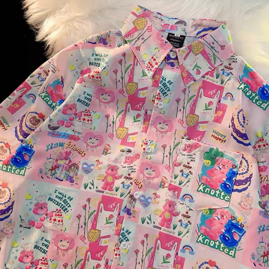 A 多巴胺蓝粉系列短袖衬衫